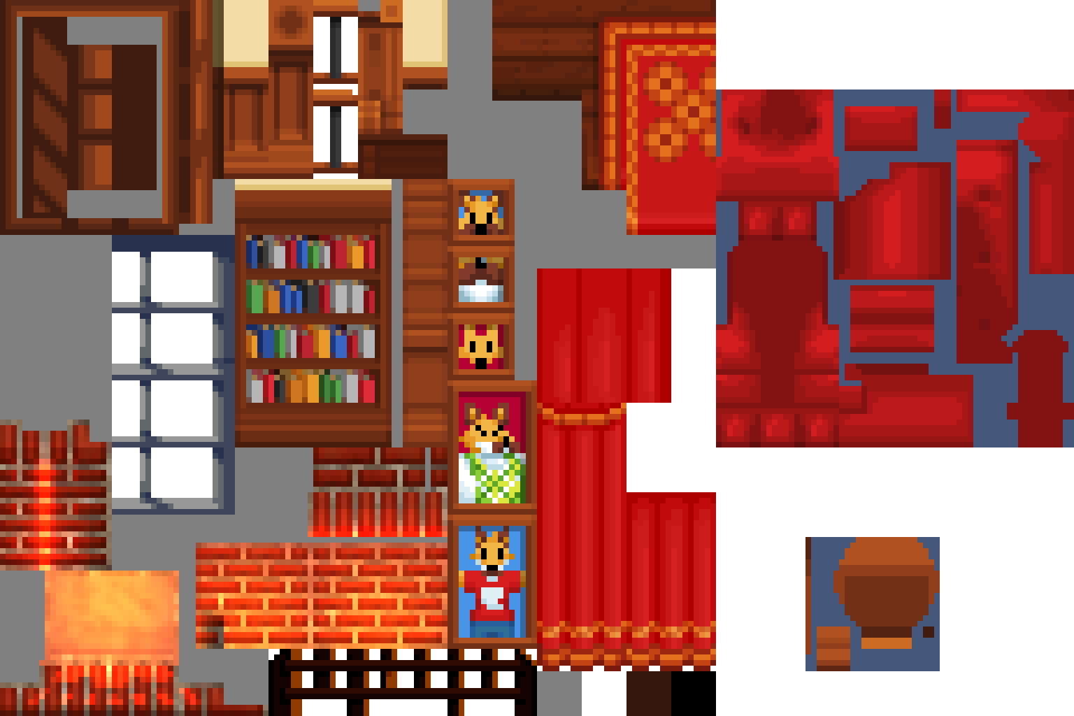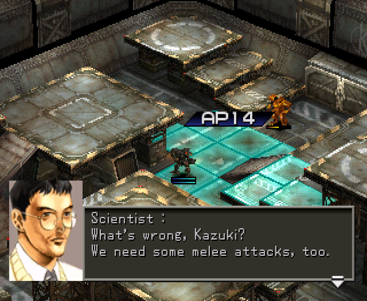 The character portraits fell somewhere between the traditional markers and paints of Front Mission 3, and the clean and crisp pixel art of The Misadventures of Tron Bonne. My portraits started in Clip Studio Paint as high-resolution digital art, and were then reduced in both scale and colors to match their intended resolution and aspect ratio. From there, they received manual per-pixel touch ups in Aseprite to ensure that their new pixel forms faithfully matched their original high-resolution counterparts.