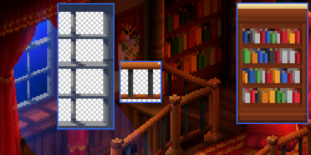 I built the environment out of 8×8px tiles using the Blender addon ReSprytile, and the scene made use of Drips PSX EFX for its simulated affine texture mapping and screen-space vertex snapping. Blender's compositor was also used to simulate the PS1-style rimlight and subtractive blending.